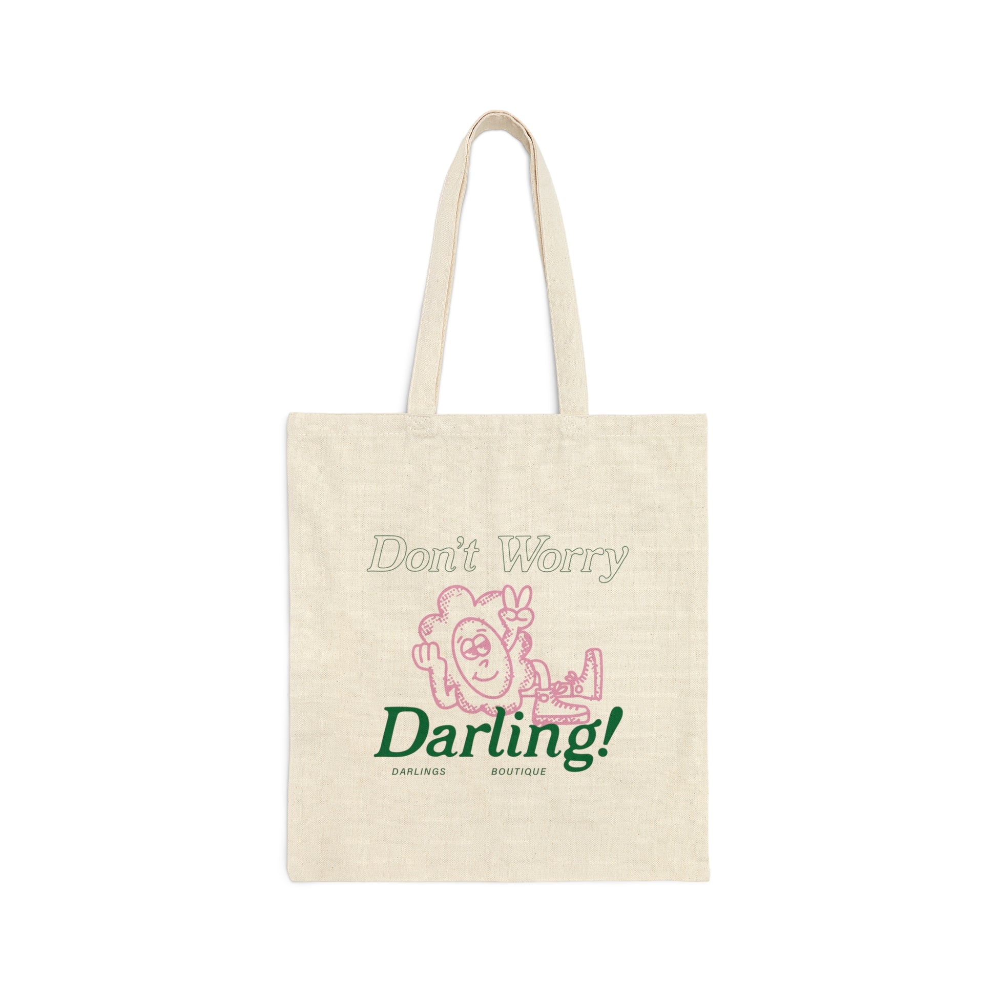 This 100% cotton canvas Don't Worry Darling Tote Bag is part of the Cali Collection. It's the perfect choice for everyday use, thanks to its durable and lightweight construction. It's sure to become one of your favorite accessories.