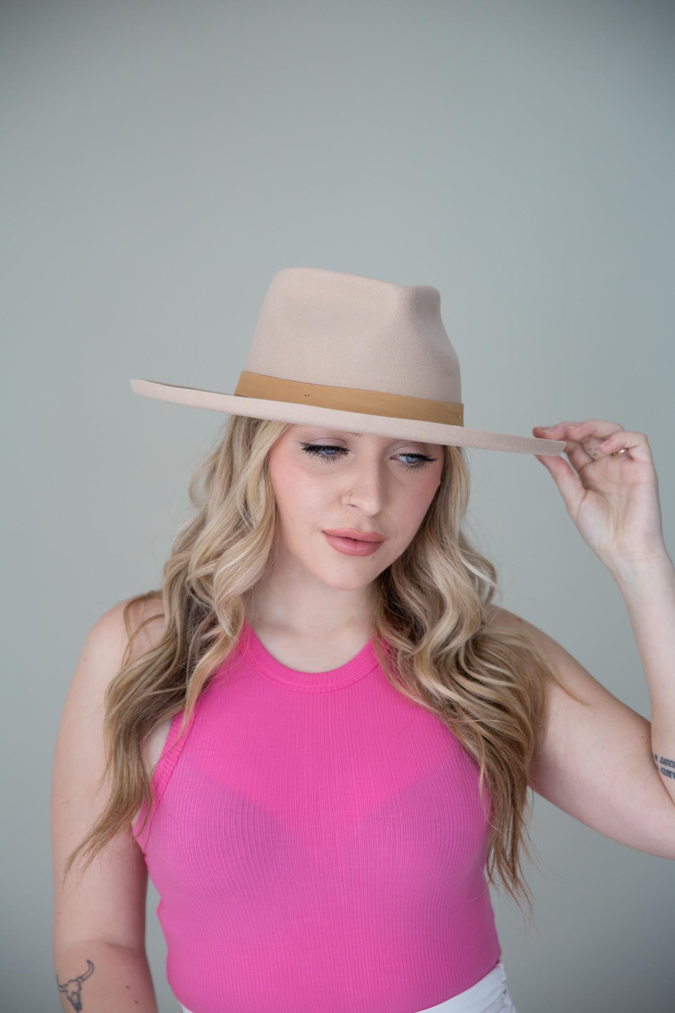 Its classic shape mixed with a structured pencil roll brim makes Luca an easy choice for new hat lovers to the most avid hat girl. Teardrop Fedora Crown with a Pencil Roll Brim