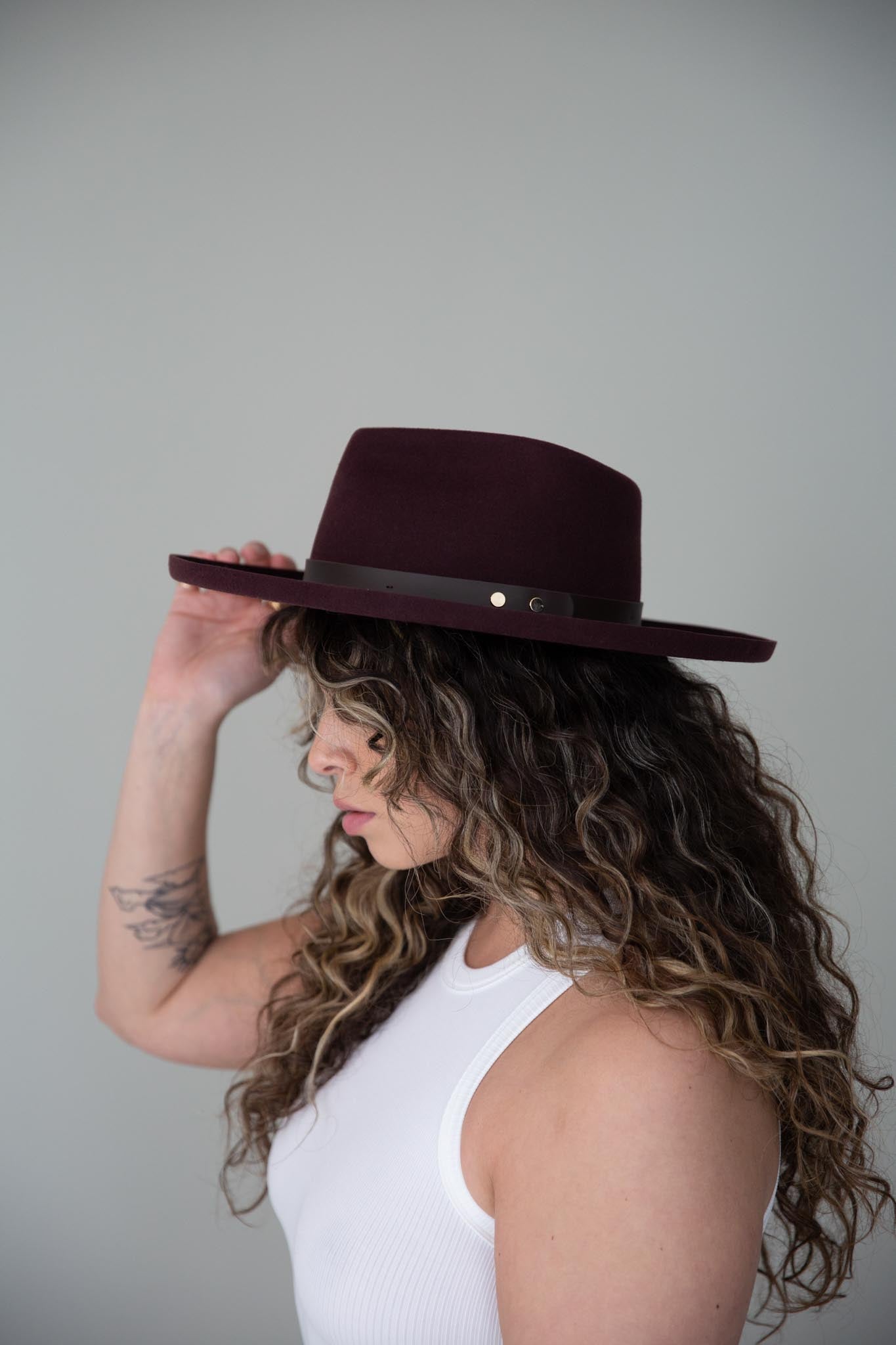Its classic shape mixed with a structured pencil roll brim makes Luca an easy choice for new hat lovers to the most avid hat girl. Teardrop Fedora Crown with a Pencil Roll Brim