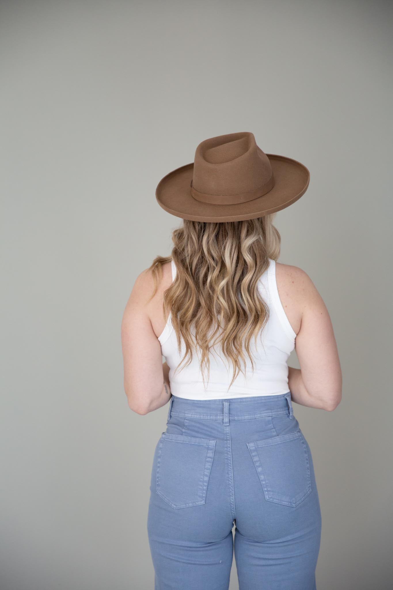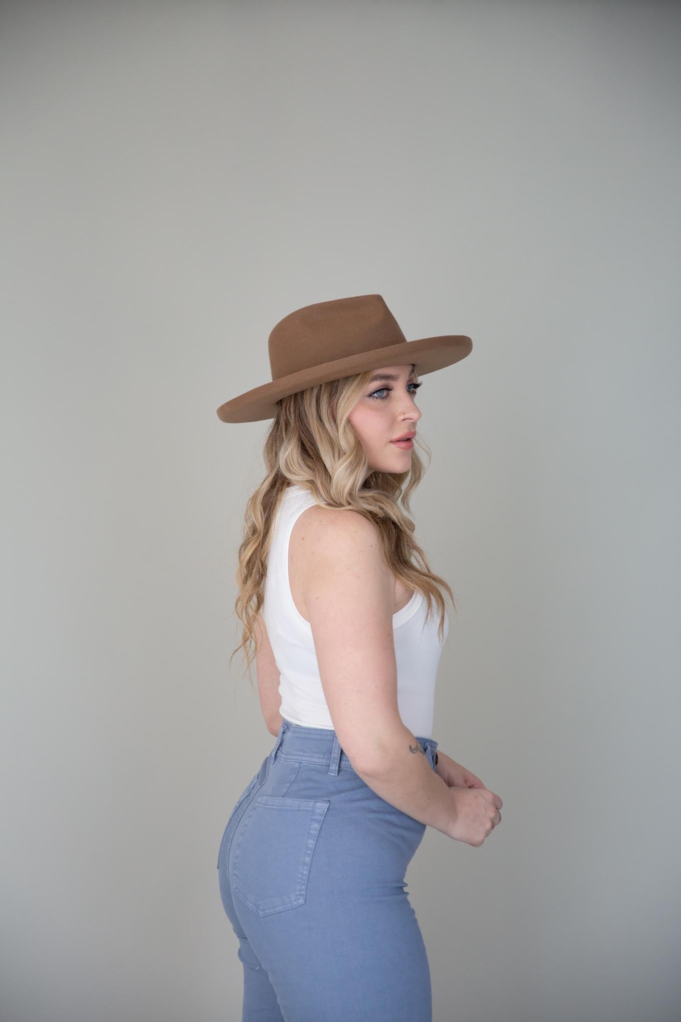 Its classic shape mixed with a structured pencil roll brim makes Luca an easy choice for new hat lovers to the most avid hat girl. Teardrop Fedora Crown with a Pencil Roll Brim